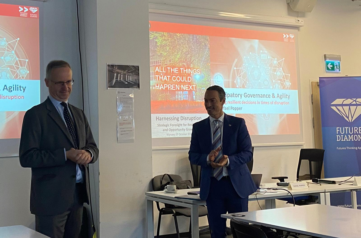 Between 6 and 10 October 2025, the Warsaw University of Technology (WUT) had the pleasure of hosting an international executive course titled “Harnessing Disruption: Strategic Foresight for Resilience & Growth.” The programme was designed by Futures Diamond Ltd and the Futures Capacity Academy (UK), in collaboration with WUT, which provided academic contributions, and organisational support.